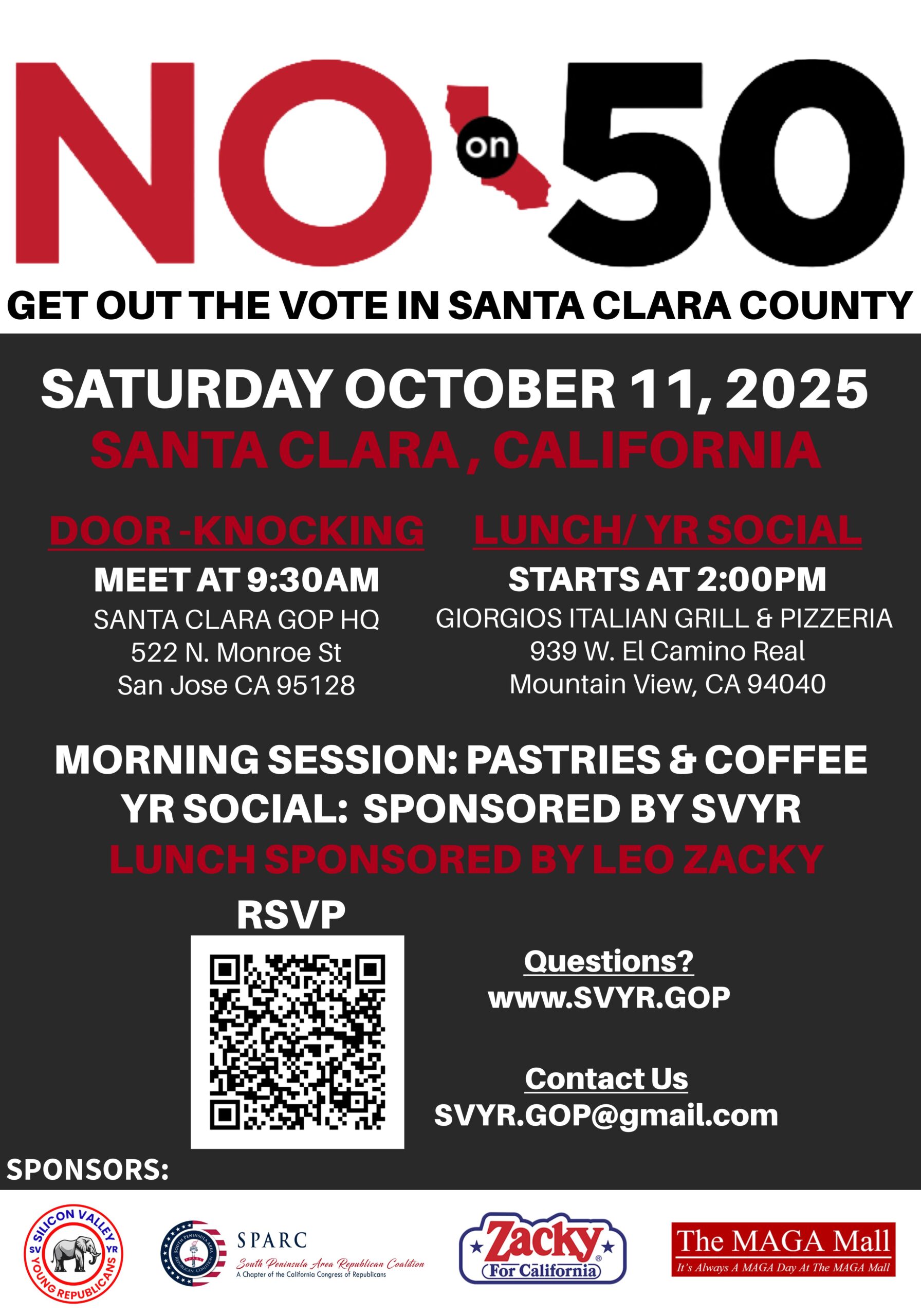 - Silicon Valley Young Republicans and SPARC: No on 50 – Get Out The Vote In Santa Clara County