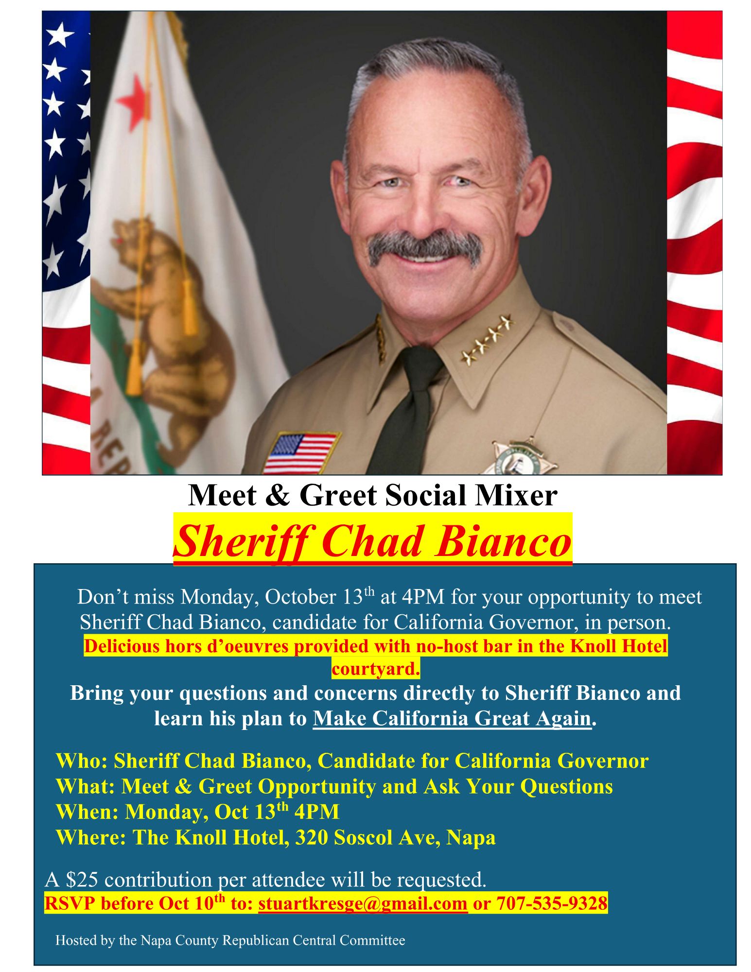 - Napa GOP: Meet and Greet Social Mixer with Sheriff Chad Bianco