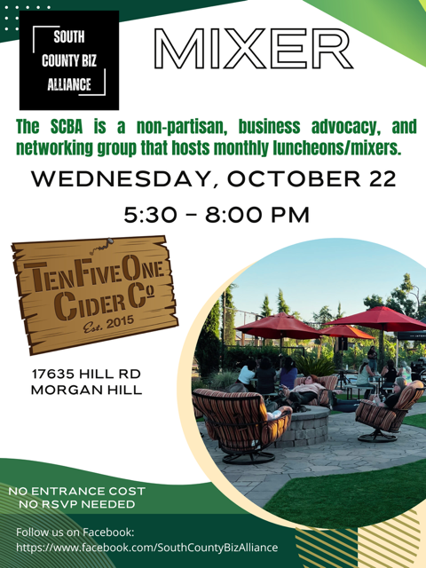 Wednesday, October 22, 2025 / 5:30 pm – Ten Five One Cider, 17635, Morgan Hill